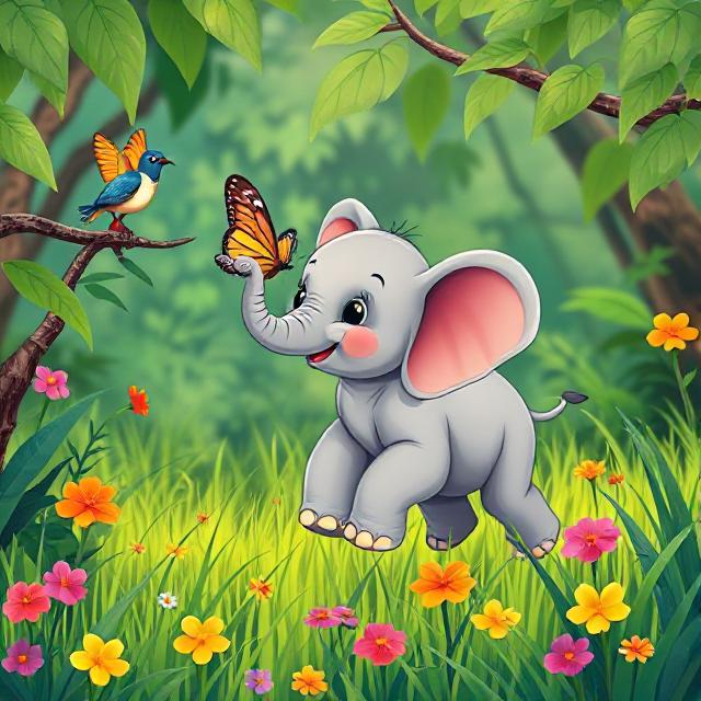 Once upon a time, in the green and giggly jungles of Jamboree Land, lived a baby elephant named Ellie. Ellie had the biggest ears, the cutest smile, and a tiny little habit...